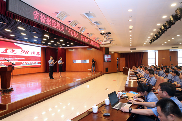 7月1日上午,在省委主题教育第一巡回指导组组长、省政协常委、提案委副主任崔永平与省委主题教育第一巡回指导组成员、省财政厅副调研员彭曙光精心指导和参与下,湖南省检察院机关庆祝建党98周年暨微党课决赛比赛大会在国家检察官学院湖南分院四楼进行。