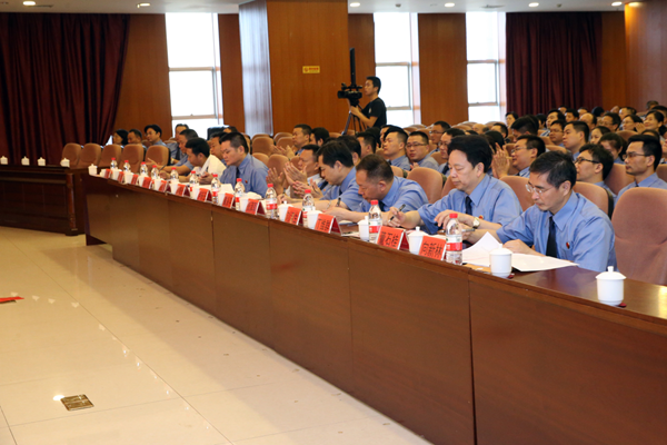 省检察院在家院领导、检委会专职委员、厅级干部、机关党员干部职工及长沙、衡阳、怀化铁检院检察长、党(总)支部书记参加了会议。(省检察院 龙海 世炎 供稿)
