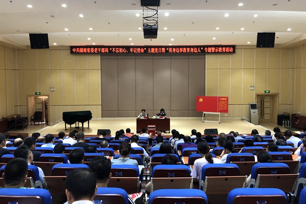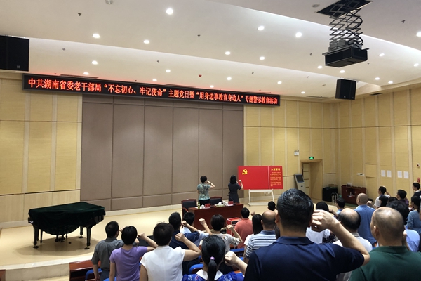 7月2日至4日,中共湖南省委老干部局结合庆祝中国共产党建党98周年,组织开展了“不忘初心、牢记使命”主题党日暨“用身边事教育身边人”专题警示教育系列活动。省委第一巡视组到会指导,局系统全体在职干部职工参加教育大会,局属各党支部开展了专题学习讨论。