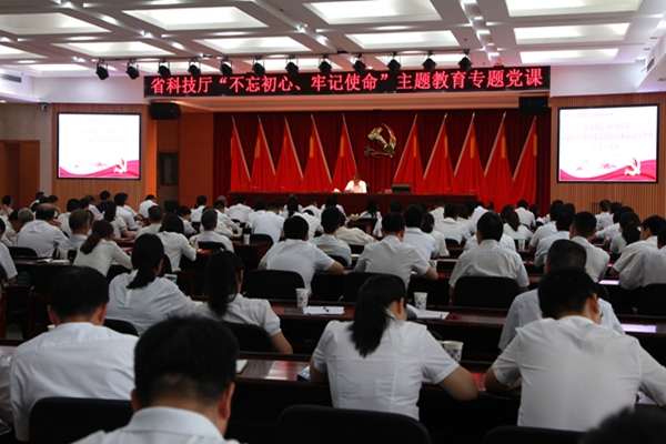 7月1日,省科技厅开展“不忘初心、牢记使命”主题教育专题党课,厅党组书记、厅长童旭东以“坚守初心、担当使命,以创新型省份建设的扎实成效引领全省高质量发展”为题,给全厅党员干部职工上了一堂生动的党课。