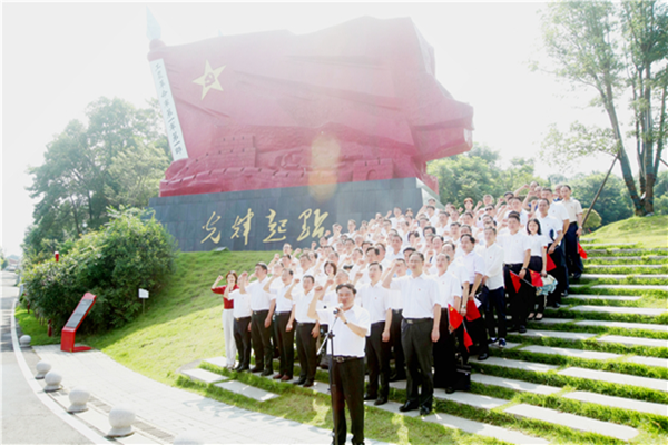 党课正式开始前,全体同志在“光辉起点”雕塑前,在工农革命军第一军第一师旗帜下,面对鲜红的党旗,举起右手,握紧拳头,由胡伟林领誓,庄严宣誓,接受洗礼,宣誓永远跟党走的决心与信念,宣誓为人民谋幸福永远不变的初心与承诺,宣誓为中华民族谋复兴的使命与担当,永葆共产党员的政治本色。当“不忘初心”主题歌曲的音乐响起,全体同志挥舞起手中的红旗,跟随音乐与节奏齐声歌唱,歌声响彻纪念馆整个广场,喜悦与自豪洋溢在每位同志脸上,内心深处涌动着对初心与使命的激动与坚守。走进秋收起义纪念馆,驻足一张张历史图片、一件件珍贵遗物和一个个历史重现的场景前,聆听讲解员生动详实的解说,大家更进一步了解了秋收起义的革命历程及其伟大意义,认识到了革命历程的艰难曲折和革命胜利的来之不易,更加坚定了“不忘初心、牢记使命”的决心与信心。