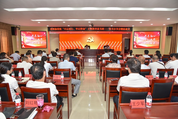 6月28日下午,省科协“不忘初心、牢记使命”主题教育读书班举行结业式。省科协党组书记、常务副主席刘小明主持并作总结讲话。省委“不忘初心、牢记使命”主题教育巡回指导组第五组陈美军同志出席。结业式分为读书分享会和读书班总结两个阶段,5位学员代表分享了读书心得。省科协机关全体干部、直属单位副处级以上干部参加主题教育读书班结业式。