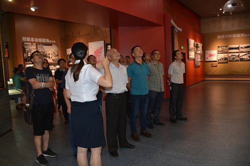 党员们在讲解员的引导下,通过陈列馆的文字、图表、照片、油画、地图、历史信件、书籍、物品、场景模拟、3D投影等各种形式和手段,湖南党史的脉络和细节清晰而生动的展现在我们眼前。党史陈列馆布展以“敢教日月换新天-中国共产党湖南历史陈列”为主题,以历史轴线为脉络,讲述了“开辟新天地-新民主主义革命时期”、“描绘新画卷-全面建设社会主义时期”、“谱写新篇章-改革开放时期”三个不同历史时期发生的重大事件,清晰的记录了中共湖南地方组织的发展历程,重点展示了湖南党史军史人物的光辉业绩,展现了党在湖南领导人民进行革命、建设和改革所取得的辉煌成就和宝贵经验,让大家对党的艰辛历程有了更加深刻的了解,也对建党以来所取得的成绩感到由衷的崇敬。其中还用专题形式,介绍了以毛泽东为代表的湘籍和长期在湘工作的优秀党史人物,其中包括党和国家领导人、人民军队高级将领、著名英烈代表、各领域杰出代表和历任湖南省委书记。几千张图片、几百件实物,十几处场景,一幅幅生动逼真的画面呈现开来,党员们强烈地感受到先辈们的革命情怀,再一次接受了心灵上的净化,精神上的洗礼。