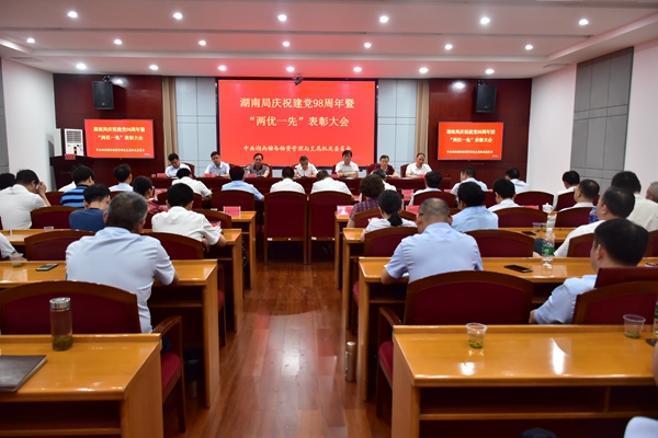 为庆祝中国共产党成立98周年,7月1日下午,湖南储备物资管理局(以下简称湖南局)召开纪念建党98周年暨“两优一先”表彰,回顾党的光辉历程,传承党的优良传统,表彰优秀共产党员、优秀党务工作者和先进基层党组织,激励动员全局各级党组织和广大党员不忘初心砥砺前行、牢记使命担当作为。局机关全体党员干部和受表彰的先进集体、优秀个人、基层单位党员代表90余人参加会议,局党组成员、副局长卢东风同志主持会议。