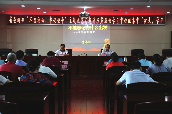 6月24日下午,省委编办举行“不忘初心、牢记使命”主题教育专题讲座暨理论学习中心组(扩大)学习,邀请省政府参事、省委十九大精神宣讲团成员、省委原党史研究室主任张志初作主题教育专题讲座。省委编办廖跃贵副主任主持学习,在家办领导、各处(中心)负责同志和机关全体党员干部参加学习。