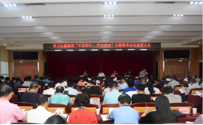 6月13日下午,省卫生健康委召开 “不忘初心、牢记使命”主题教育动员部署会,深入学习贯彻习近平总书记在中央“不忘初心、牢记使命”主题教育工作会议上的重要讲话精神,认真落实省委动员会议要求,对全委 “不忘初心、牢记使命”主题教育活动进行深入的动员和部署。要求全委党员干部按照全省“不忘初心、牢记使命”主题教育工作会议精神,提高政治站位,自觉把思想和行动统一到习近平总书记重要讲话精神上来,统一到中央和省委的决策部署上来,为实施健康中国战略做出新的贡献。