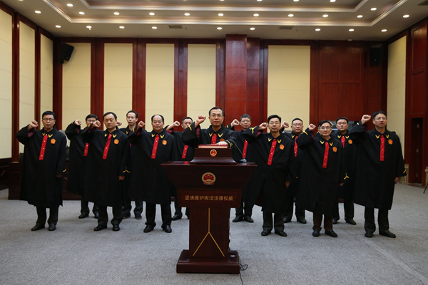 6月4日,湖南高院组织省人大常委会任命的13名法律职务人员举行就职宪法宣誓仪式。宣誓仪式由湖南高院党组书记、院长田立文监誓,党组副书记、副院长陈雪楚领誓,党组成员、政治部主任黎池主持。