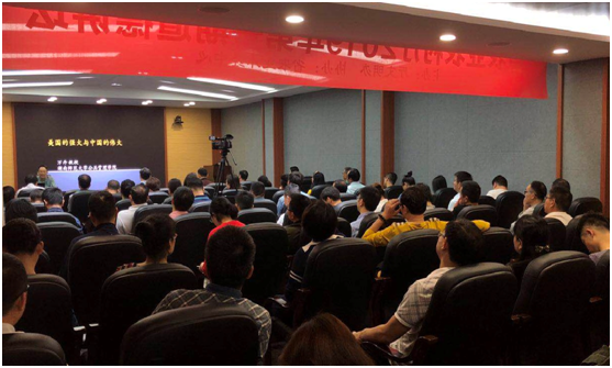 本期道德讲堂由湖南师范大学博导万丹教授以《美国的强大与中国的伟大》为题,紧贴时政国情,紧扣“四个自信”,通过不同角度对中美两国实情进行深入比较,体现出中国的大格局、大作为,凸显出中国的伟大,坚定了大家对中国特色社会主义现代化建设事业必胜的信心,进一步弘扬了爱国主义精神,激发了爱国、报国、兴国、强国的正能量。