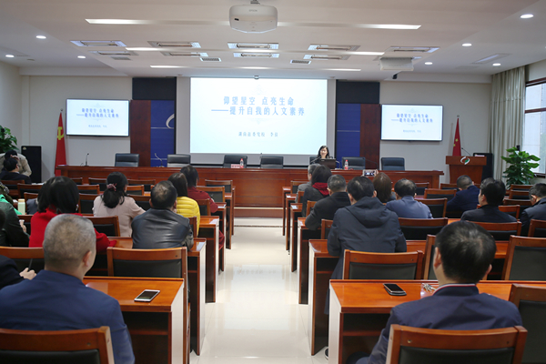 为深入学习贯彻党的十九大精神,积极培育和践行社会主义核心价值观,加强和提高全体干部职工的道德意识,扎实推进新时代统计文化建设,构建和谐文明美好机关,4月10日上午,省统计局举办了2019年第一期“道德大讲堂”,讲座由局党组成员、总经济师颜宏晖主持,邀请省直党校李佳教授作了以《仰望星空,点亮生命——提升自我的人文素养》为主题的讲座,全局干部职工参加。
