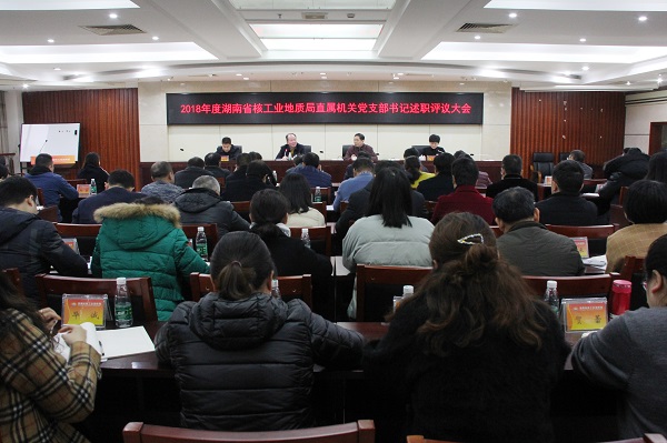 12月21日,省核工业地质局召开2018年度直属机关党支部书记述职评议会议。局党组书记罗年出席会议并讲话,局党组成员、局直属机关党委书记、副局长刘向明对支部党建工作进行点评。局直属机关党委委员、局直属机关纪委委员、局直属机关各党支部书记及党建工作联络员共52人参加会议。