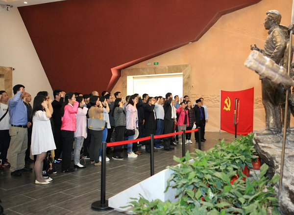 在文家市秋收起义纪念馆,在胡向东同志领誓下,全体人员面对党旗,重温入党誓词,在铿锵的誓言中,每一位党员干部的心灵在此受到震撼和洗礼。