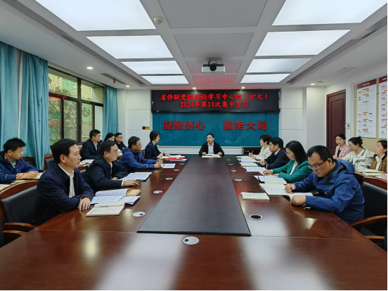 10月30日,省侨联党组理论学习中心组(扩大)举行2024年第10次集中学习,省侨联党组书记、副主席孙民生主持学习并讲话,省侨联党组成员、副主席彭迪、黄重华及全体机关干部参加。