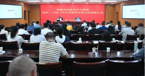 9月27日上午,常德市民政局举行学习贯彻党的二十届三中全会精神专题宣讲报告会。常德市委宣讲团成员、湖南文理学院图书馆馆长黄向阳教授应邀作专题辅导,局党组书记、局长杨文惠主持宣讲并讲话。
