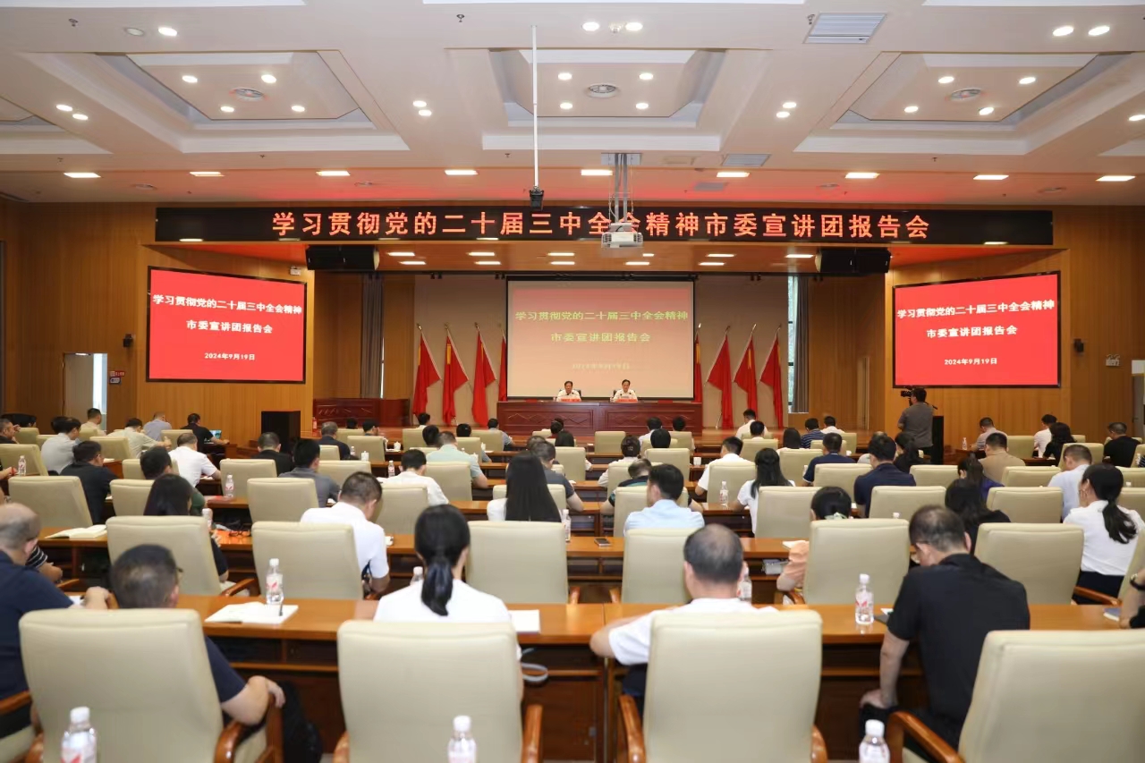 蒋峰紧紧围绕学习贯彻党的二十届三中全会精神,从深刻认识全会重要意义、深入学习领会习近平总书记在党的二十届三中全会上的重要讲话精神、全面准确理解《决定》提出的进一步全面深化改革重大举措、全力以赴抓好全会精神贯彻落实四个方面,进行了全面宣讲和深入阐述。