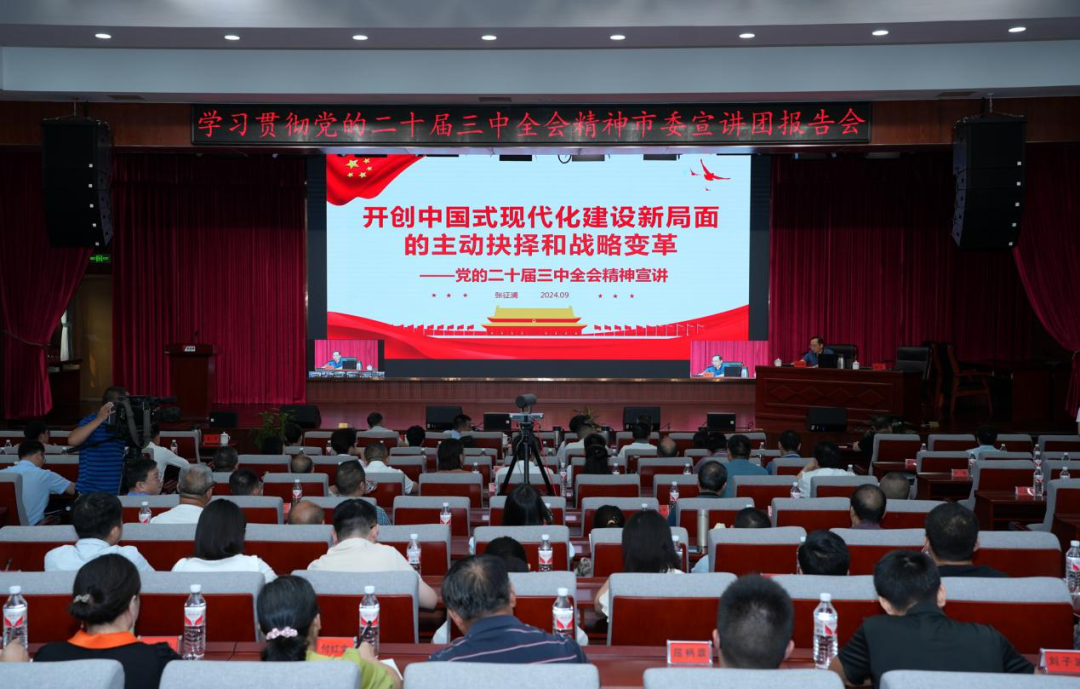 为深入学习贯彻党的二十届三中全会精神,根据市委安排,9月19日,娄底市纪委监委举行学习贯彻党的二十届三中全会精神市委宣讲团报告会。市委宣讲团成员、娄底职业技术学院党委书记张征澜作专题宣讲,市纪委副书记、监委副主任孙义主持报告会,市纪委监委机关以及市委巡察办、派驻纪检监察组、办案管理中心等近200人参加。