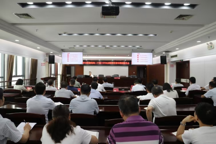为深入学习宣传贯彻党的二十届三中全会精神,把思想和行动统一到党中央的决策部署上来,9月5日,根据省委宣传部统一安排,省委宣讲团成员、省委改革办副主任唐超雄到省委军民融合办作党的二十届三中全会精神专题宣讲,省委军民融合办分管日常工作的副主任刘中杰主持,办机关及直属单位全体党员、干部和军队派驻干部参加。