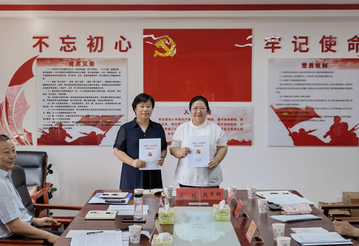 在与会人员的见证下,秦明兰与郑晓芳签订“双联”结对帮扶共建协议书。
