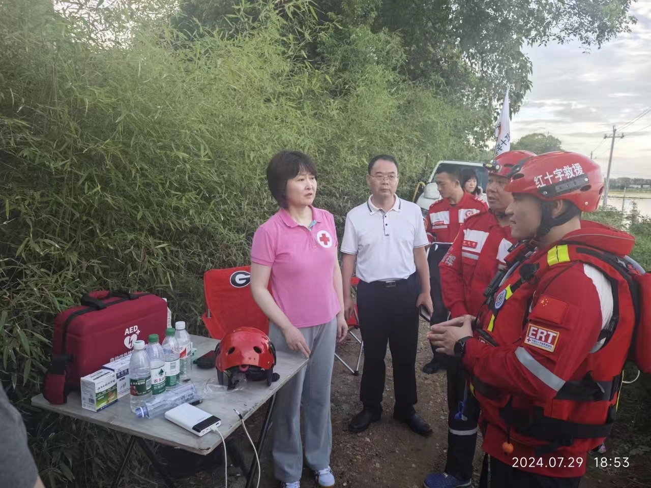 省红十字会主要负责人靠前指挥,带领一个工作组来到湘潭县河口中学安置点,看望了受灾群众,鼓励他们保持乐观的心态,勇敢面对困难,同时还走访了医疗室、宿舍区、食堂等地,向工作人员了解实际需求和现有困难等。随后,工作组在河口镇华中村看望了连续两天坚持河口镇开展救援的湘潭市红十字救援队队员,要求队员们要坚决服从当地指挥部的统一安排,科学规范开展救援,同时叮嘱他们一定要注意自身安全。