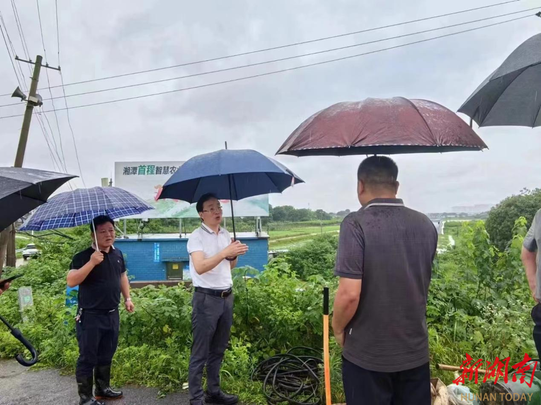 6月25日下午,湖南首程农业发展有限公司种植基地刚经历一场大雨,天空中依然飘着小雨滴。湘潭市委农办主任、市农业农村局党委书记,乡村振兴局局长(兼)伍石元一行冒雨前往基地,指导开展农业生产防汛救灾工作。