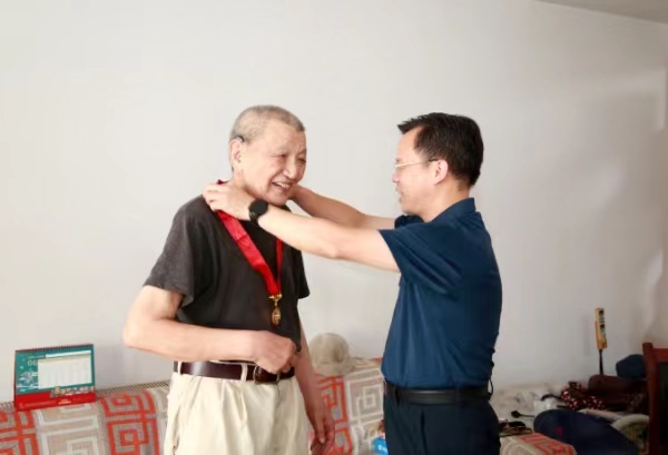 省民宗委党组副书记、副主任、一级巡视员胡建新来到老党员王国达家中,为老人戴上“光荣在党50年”纪念章,与老人话往事、拉家常,询问老人的身体状况和生活情况,表达美好的祝福和崇高的敬意,希望他保重身体,继续发光发热,搞好传帮带,为党和人民的事业添砖加瓦。