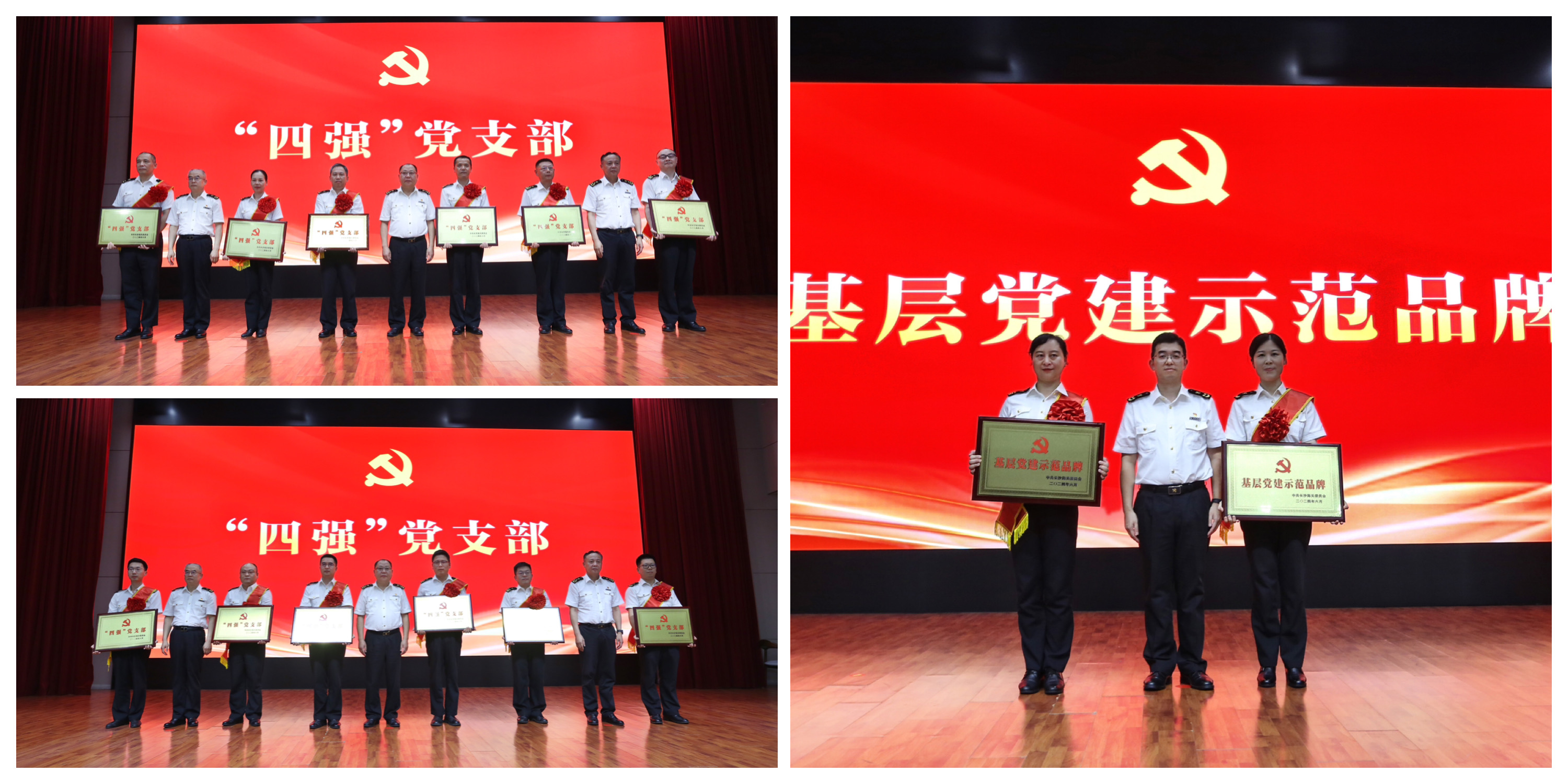 活动中,党委书记、关长沈大为基层党建示范品牌代表授牌,关领导为关区“四强”党支部授牌,政治部主任宣读认定文件。