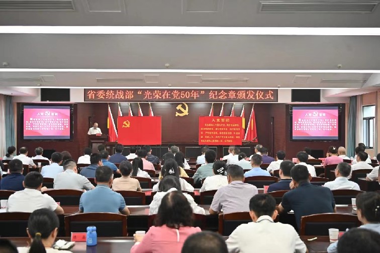 七一前夕,省委统战部举行2024年“光荣在党50年”纪念章颁发仪式。省委常委、省委统战部部长隋忠诚出席仪式并颁发纪念章。