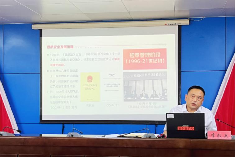 为牢固树立安全发展理念,结合安全生产月活动安排,6月26日,民航湖南监管局党委委员、副局长李敬兵聚焦“民航安全生产”主题,为全体党员干部讲授专题党课。