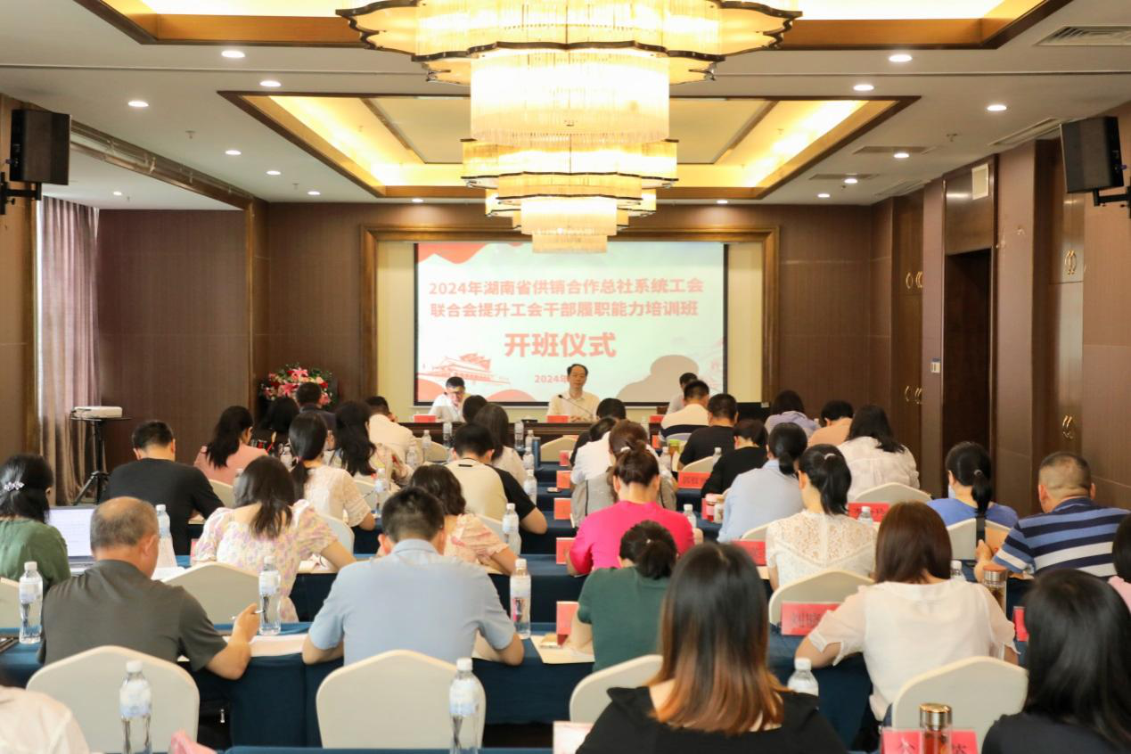 6月13日至14日,2024年湖南省供销合作总社系统工会联合会提升工会干部履职能力培训班举办。省社党组成员、理事会副主任张军出席开班仪式并作动员讲话。培训班由省社系统工会联合会主席彭智主持,来自省社及直属企事业单位的工会干部共40余人参加培训。
