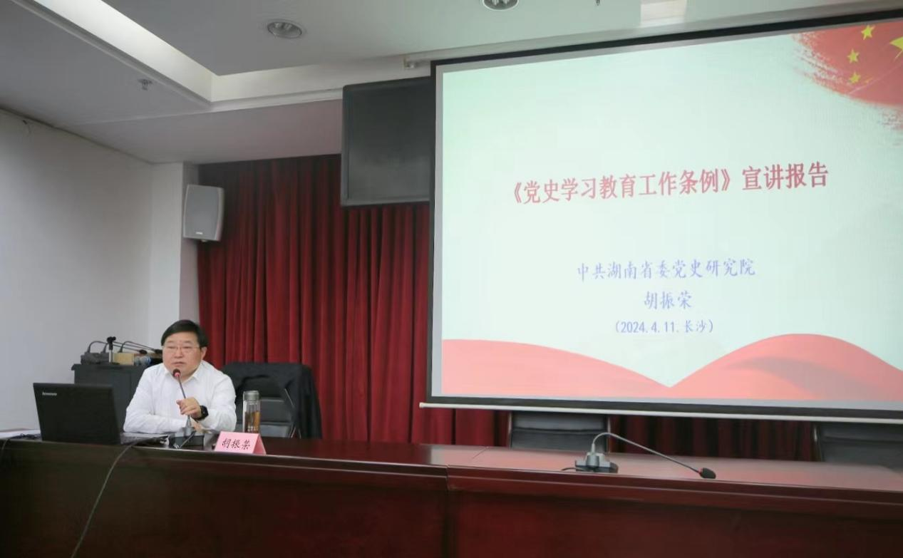 胡振荣强调,作为党史工作者要深入学习领会贯彻习近平总书记关于党的建设的重要思想,坚决落实全面从严治党战略方针,切实增强履行全面从严治党的责任意识,全面提高机关党建质量,推动全面从严治党向纵深发展;要坚持以党的政治建设为统领,为党史事业高质量发展提供坚强保障;坚持以《党史学习教育工作条例》(以下简称《条例》)为抓手,为党史高质量发展展现新的担当;坚持落实党的建设和全面从严治党工作主体责任,为党史高质量发展展现新的作为。胡振荣就学习宣传贯彻《条例》作了专题党课,主要从《条例》出台的背景与重大意义、《条例》的主要内容和特点、如何抓好《条例》的贯彻落实、学习贯彻《条例》的思考等四个方面,对《条例》进行了全面解读。