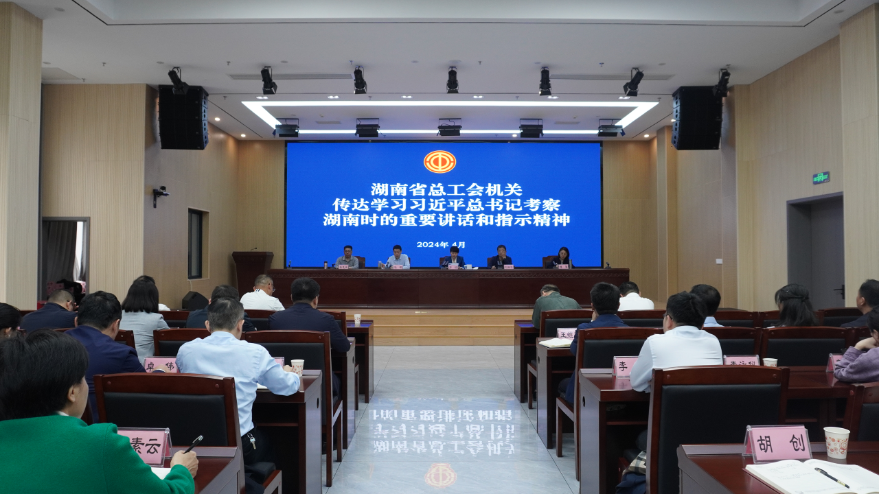 4月2日,省总工会召开机关全体干部会议传达学习贯彻习近平总书记在湖南考察时的重要讲话和指示精神,结合工会工作实际进行全面动员部署。省总工会党组副书记、副主席罗琼主持并讲话。