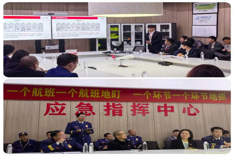 随后,大家前往湖南航空运行指挥中心,共同了解了湖南航空指挥运行智慧平台(IAOC)建设情况。湖南航空运指航务党支部党员代表以航空器空中遇险专项预案为例,“解剖麻雀式”地介绍了公司应急体系建设情况和应急相应平台运行情况。