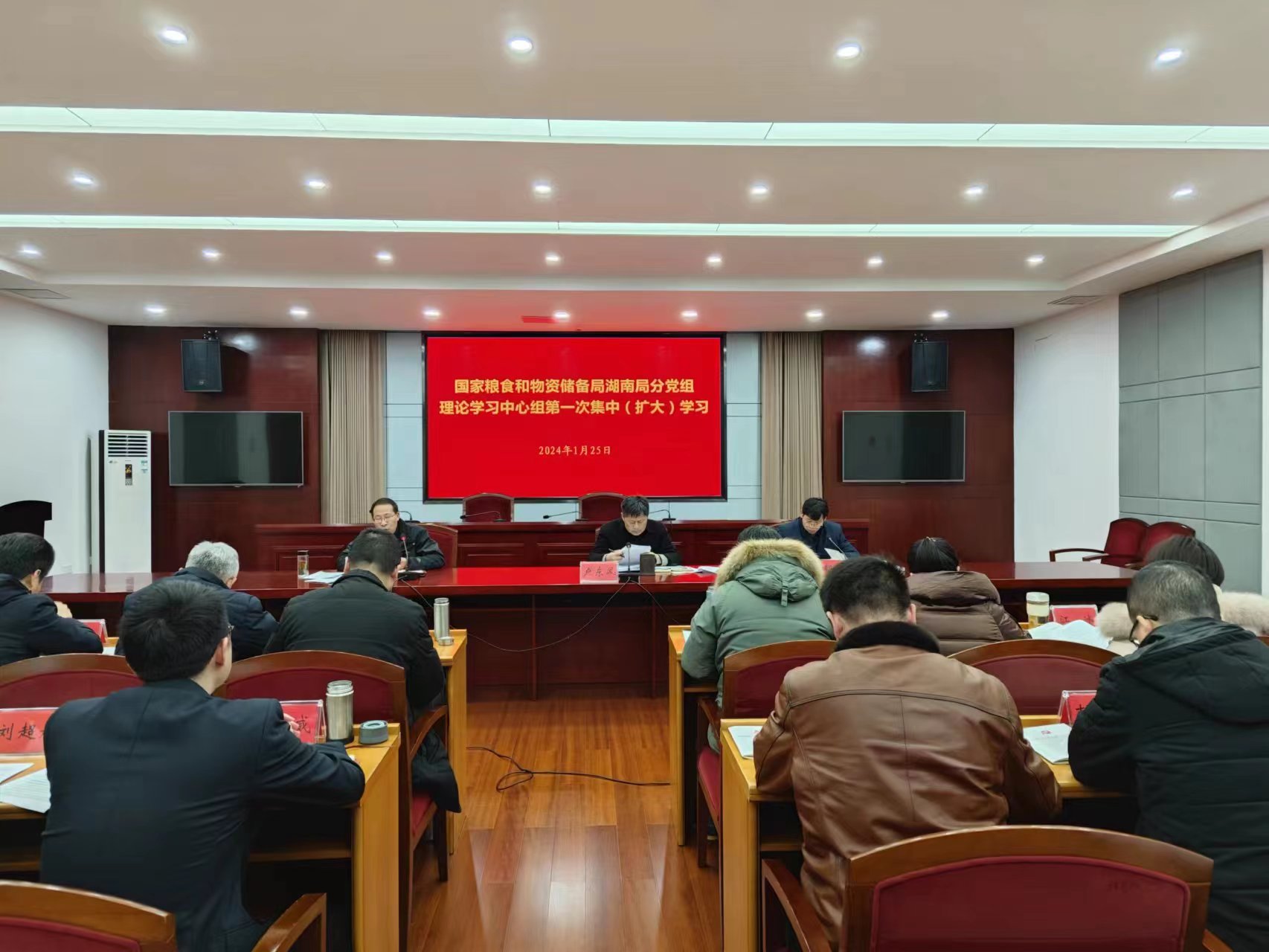 1月25日,国家粮食和物资储备局湖南局分党组理论学习中心组召开2024年第一次学习会议,局分党组成员和局机关、服务中心副处级以上干部参加学习研讨。