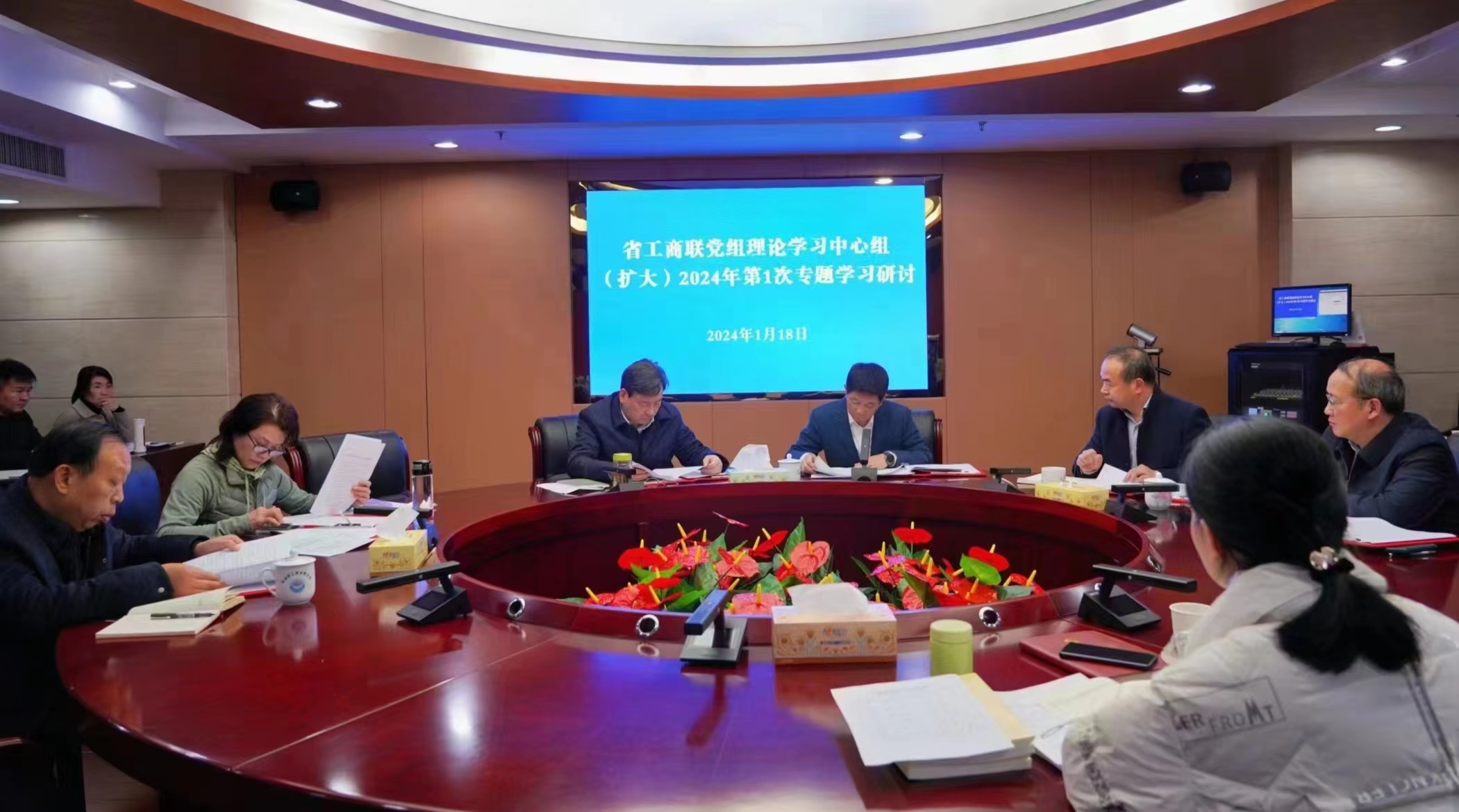 省工商联党组理论学习中心组(扩大)举行2024年第一次集体学习研讨,集中学习了习近平总书记在二十届中央纪委三次全会上的重要讲话精神、《中国共产党第二十届中央纪律检查委员会第三次全体会议公报》、新修订的《中国共产党纪律处分条例》等内容,围绕“推进清廉机关建设、构建新型亲清政商关系、促进“两个健康”开展专题研讨。省委统战部副部长、省工商联党组书记刘事青主持会议。省工商联党组成员,驻会党外会领导,一、二级巡视员,机关各处室(中心)负责人参加学习研讨。