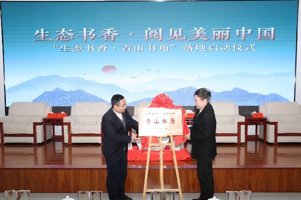 大会为“生态书香·青山书角”揭牌,湖南首个“青山书角”落地湘潭大学。“青山书角”以书刊为媒,由中国环境出版集团精选生态环境类优秀书刊,结合各地特色,进行书刊定向赠阅和生态文化衍生品开发。这是高校同中国环境出版集团深化合作,携手践行习近平生态文明思想的重要举措和具体行动,为美丽的湘大校园再添一缕书香。
