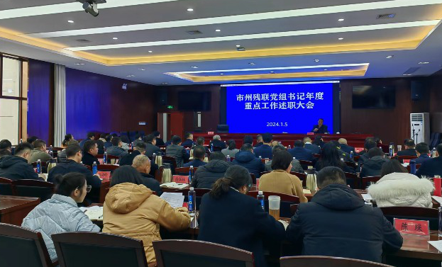 1月5日上午,省残联召开市州残联党组书记重点工作述职大会。省残联党组、省纪委监委驻省民政厅纪检监察组领导,市州残联党组书记,省残联机关全体在职人员(含挂职)、直属单位班子成员等80余人参加。省残联党组书记、理事长尹华凯主持会议,并作点评讲话。