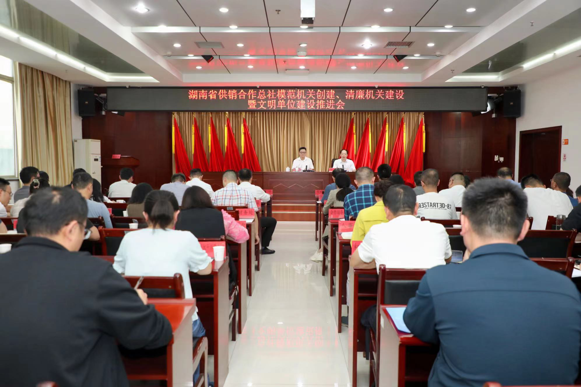 省社全体在家领导、机关全体干部职工、省社直属事业单位党政负责人、省供销集团及出资企业党组织负责人参加会议。会后,全体参会人员集中观看了《中国家规》廉政教育片。