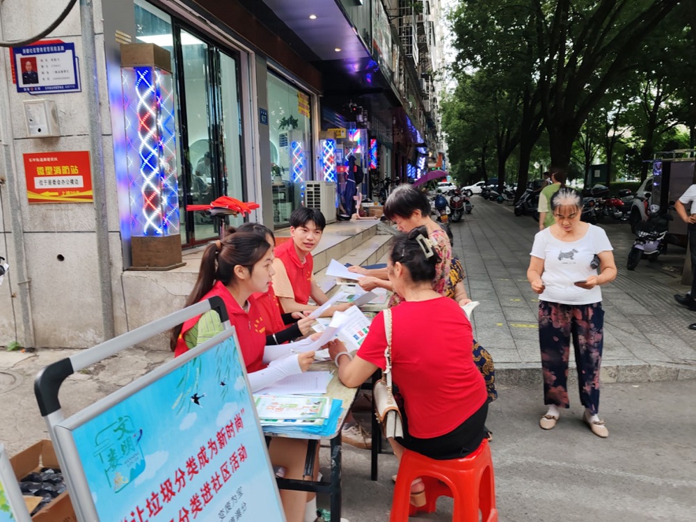 8月7日下午,娄底市直机关工委组织单位青年党员和参与暑期实践的大学生以志愿者身份,赴娄底市娄星区乐坪街道新建社区开展“让垃圾分类成为新时尚”垃圾分类进社区主题宣传活动。新建社区新时代文明实践站志愿者参与活动。