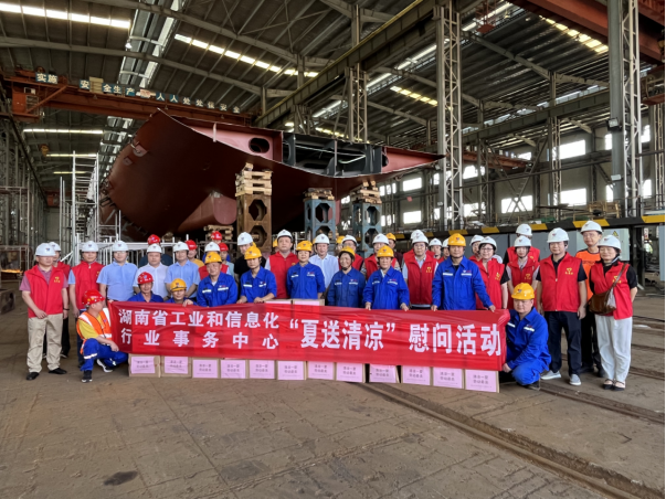 为服务全省工业经济发展,将“三送三解三优”行动落到实处,7月28日,省工信行业事务中心党委副书记、副主任杨卫华带领志愿者服务队前往湖南湘船重工有限公司开展夏送清凉和安全宣讲活动,慰问一线产业工人,为工人们送上绿豆、冰糖等夏季清凉避暑物资。