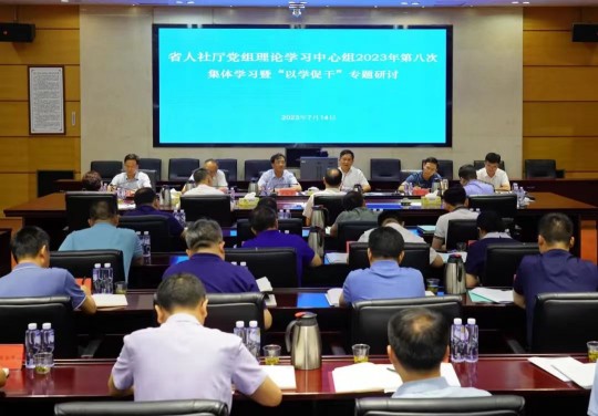 7月14日,省人社厅组织开展厅党组理论学习中心组(扩大)2023年第八次集体学习暨“以学促干”专题研讨。厅党组书记、厅长李永军主持学习,省委巡回指导组第九组副组长罗德龙一行到会指导,周光明、吴开明、王焕军、冯奇等交流发言。