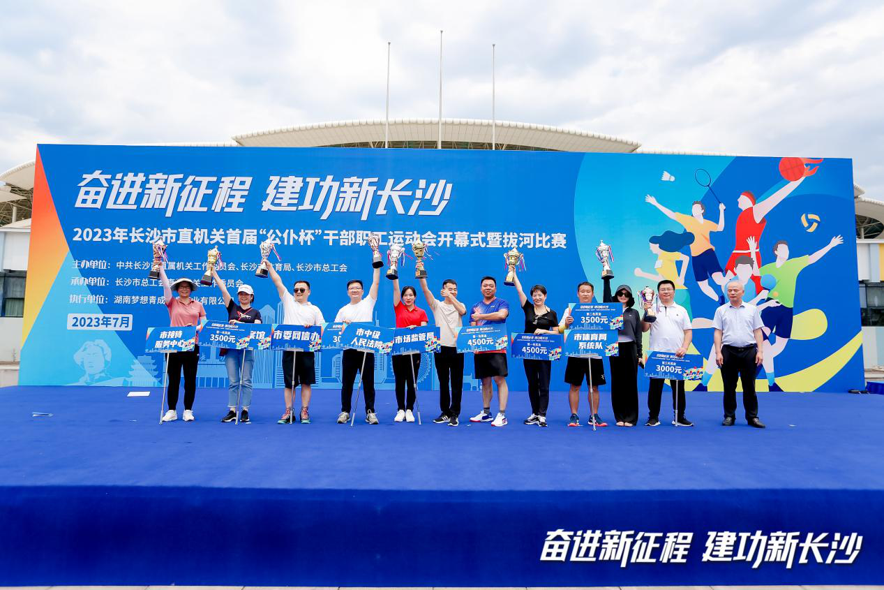 拔河比赛采用先小组循环后交叉淘汰赛制,最终角逐出了各组别队伍名次,获得系统组前4名的队伍是:市公安局代表队、市体育局代表队、市检察院代表队、市司法局代表队;获得机关甲组前8名的单位是:市档案馆、市委网信办、市接待服务中心、市直机关工委、市贸促会、市退役军人事务局、市国动办、自贸长沙片区管委会;获得机关乙组前16名的单位是:市住建局、市市场监管局、市中级人民法院、市总工会、市人大办、市资规局、市城管局、市公建中心、市政协办、市财政局、市科技局、市卫健委、市发改委、市供销社、刘少奇故居管理局、市水文局。