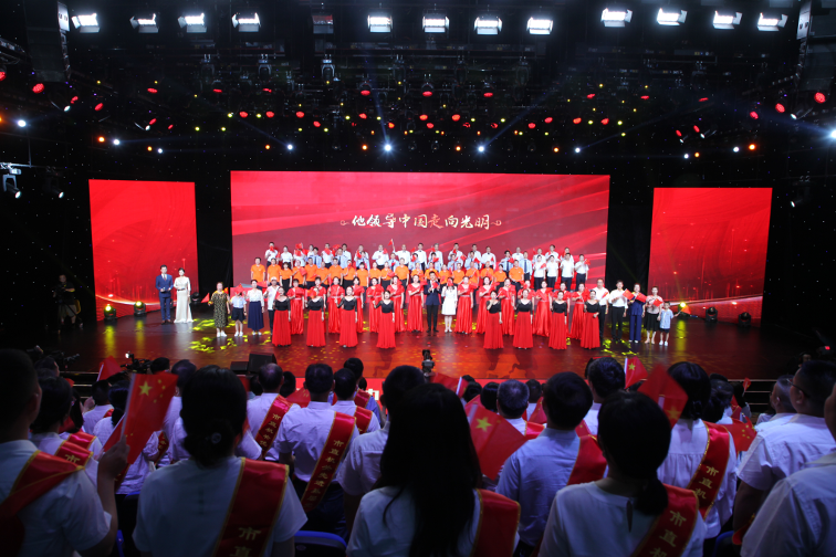 今年,市直机关工委面向市直各单位机关党组织,以“两优一先”先进典型和突出事迹为主题,精心组织开展主题微宣讲活动,广泛征集节目。当晚的汇报会,一批通过预选、复选的优秀节目进行集中展演,这也是我市“为理而来”理论宣讲活动的生动体现。展演分党徽耀初心、时代燃青春、“四敢”筑梦想三个篇章进行。《第二十八次夜访》《吕骥故居的音乐思政课》《牵挂》《勇敢“敲门”的组工干部们》《云中税寄锦书来》等主题微宣讲先后上演,以情景短剧、音乐思政课等多种形式,全面展示市直机关各级党组织和广大党员在建设现代化新湘潭中的突出事迹和时代风采,赢得了阵阵掌声。当晚揭晓了展演活动评选结果,12家单位分别获得最佳组织奖、最佳创意奖、最佳表演奖、最佳风采奖。最后,全体人员一起挥动国旗,高唱《没有共产党就没有新中国》,雄壮有力的歌声经久不息。