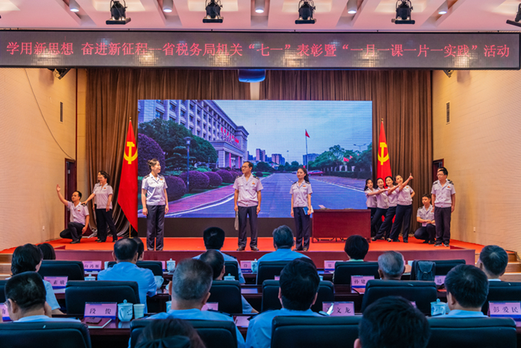 “一月一课一片一实践”活动在一堂“共享式”微党课中拉开帷幕,与会党员共同追忆中华苏维埃共和国财政人民委员部税务局首任局长李六如的生平事迹,感悟老一辈税务人的初心使命。一部“沉浸式”党史教育片,将经典红色影片与主题教育有机融合,回望党的百年风华,感受催人奋进的精神力量。一场“减税降费情景剧”,将省局机关党员干部在“走基层、找问题、想办法、促发展”活动中的三个关于减税降费的真实故事搬上舞台,生动展现广大税务党员干部积极投身主题教育、服务纳税人缴费人的责任担当。