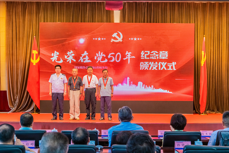 省税务局党委书记、局长曾光辉为老党员代表颁发“光荣在党50年”纪念章并致辞。全省税务系统各级党组织和广大党员干部深入学习贯彻党的二十大精神,扎实开展学习贯彻习近平新时代中国特色社会主义思想主题教育,在支持全省打好“发展六仗”、打好“税收发展八仗”、助力中非经贸博览会、“数电票”推广上线等重点工作中,充分发挥战斗堡垒作用和先锋模范作用,为开创湖南税收工作新局面提供坚强的政治保证。