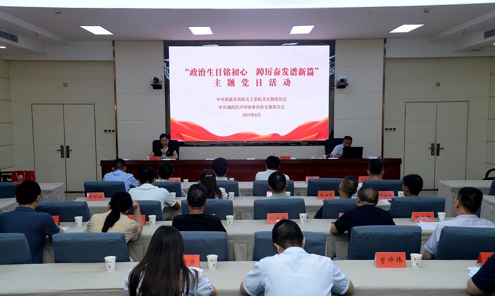 6月27日下午,娄底市直机关工委机关党支部与湖南民声律师事务所党支部联合开展“政治生日铭初心 踔厉奋发谱新篇”主题党日活动。市直机关工委常务副书记刘小辉、湖南民声律师事务所主任谷雄伟参加活动。