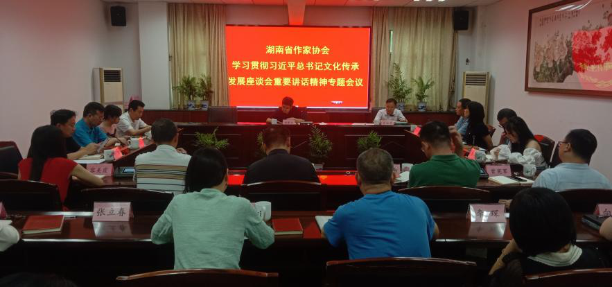 为深入推进学习贯彻习近平新时代中国特色社会主义思想主题教育走深走实,6月19日,省作协组织召开学习贯彻习近平总书记在文化传承发展座谈会上的重要讲话精神专题会议。党组书记胡革平主持会议并作中心发言,省作协主席汤素兰提交了书面发言。全体党员干部参加会议。