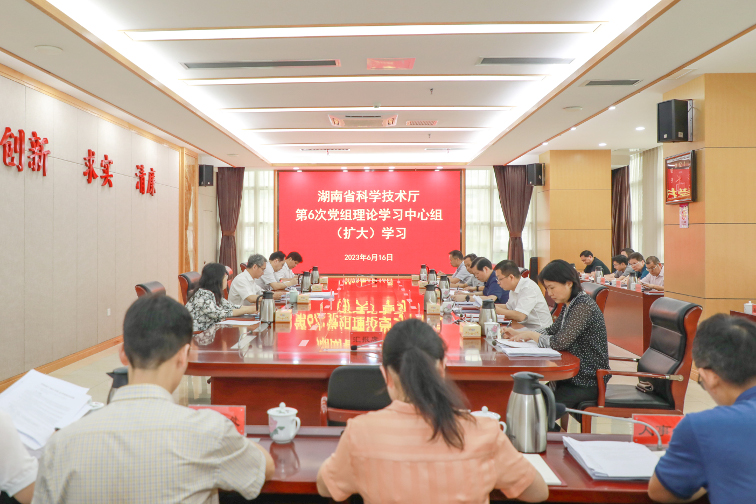 6月16日上午,省科技厅厅党组书记、厅长李志坚主持厅2023年第6次党组理论学习中心组(扩大)学习。党组成员、副厅长、一级巡视员鲁先华,党组成员、副厅长周斌,二级巡视员刘铁兵分别领学相关内容并作中心发言。党组成员、副厅长周建元,党组成员、副厅长曾立新分别作交流发言。