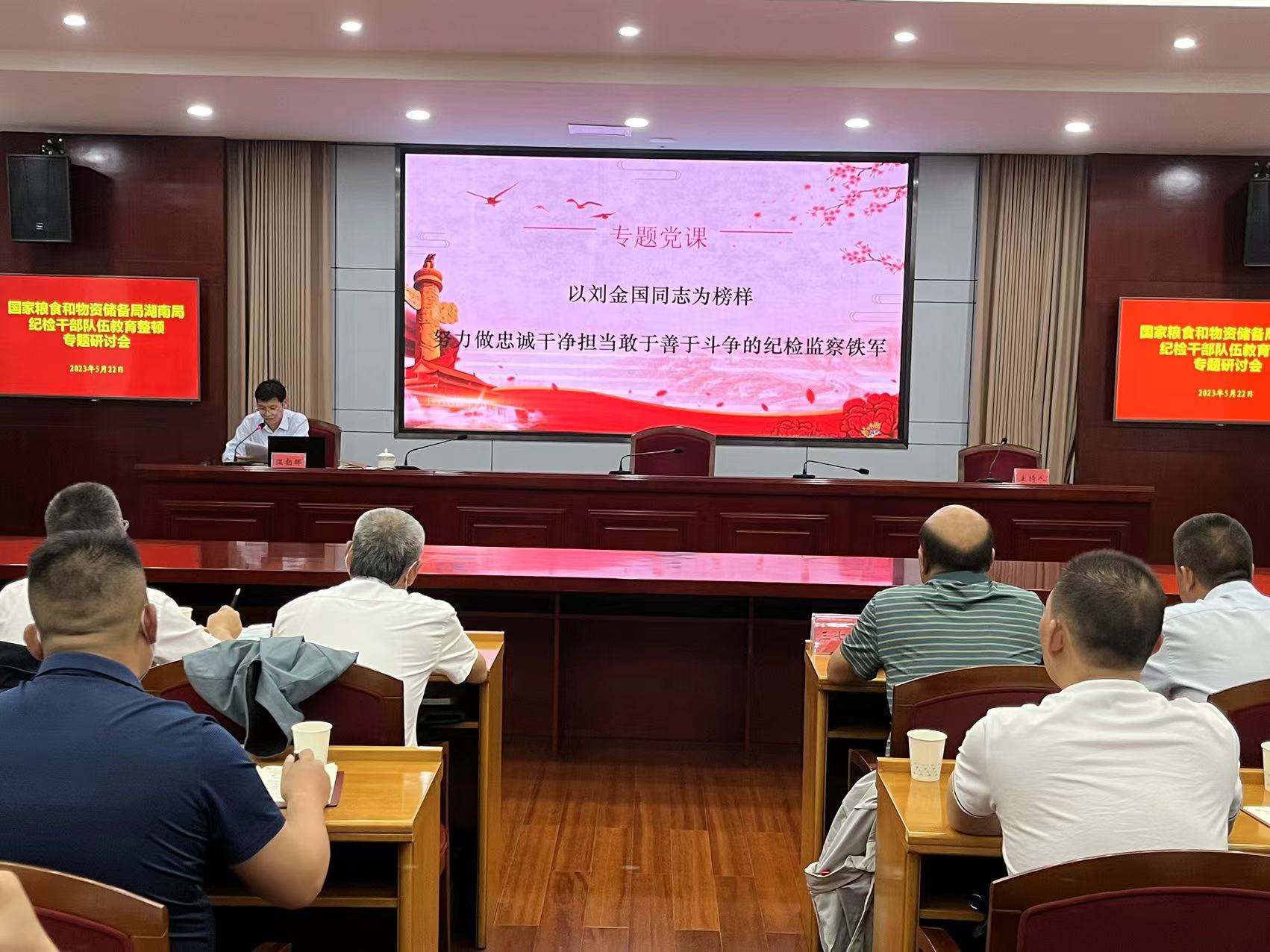 5月22日,国家粮食和物资储备局湖南局举办全局纪检干部教育整顿专题研讨会,局分党组成员、纪检组长温朝晖出席会议并上专题辅导党课,局机关和各局属企事业单位纪委书记、专职纪检干部和执纪审查人才库、巡察人才库成员共46人参会。