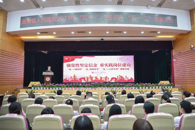 5月11日下午,省人民医院在天心阁院区大礼堂召开2023年“五一劳动节”“五四青年节”“五·一二护士节”表彰大会。省卫生健康委党组副书记、副主任祝益民,省护理学会理事长孙向明,省卫生健康委医政医管处三级调研员谢爱清出席会议,全体在家院领导、周会人员参会。会议由党委副书记黄利华主持。