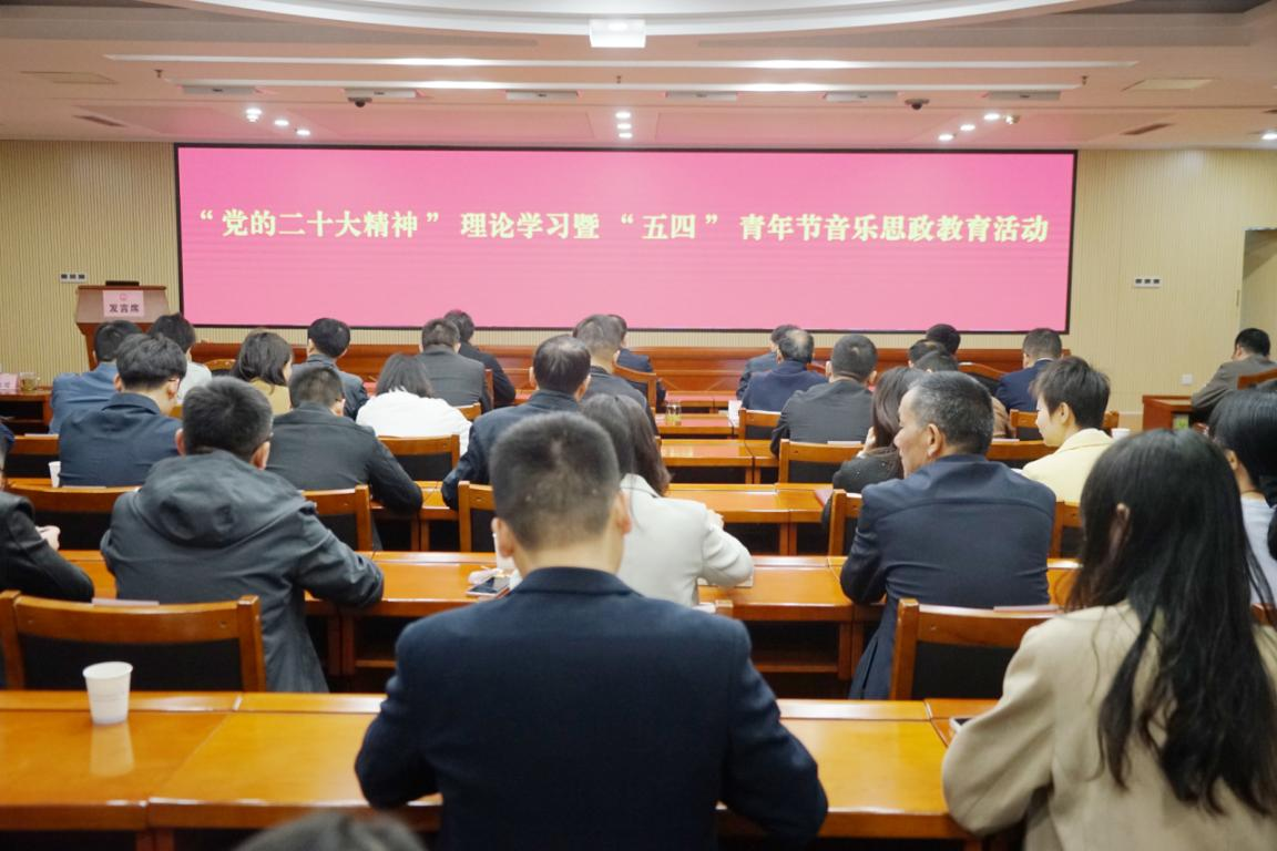 4月26日,常德市政府办公室组织开展“党的二十大精神”理论学习暨“五四”青年节音乐思政教育活动。活动以宣讲党的二十大精神为主线,通过“音乐+思政”的创新沉浸式课堂,引导干部职工弘扬“五四”精神、树立远大理想、建功伟大时代。常德市政府办公室、常德市政府研究室、常德市红十字会在家处级领导及常德市政府办直属机关党委管理单位党组织青年党员代表参加活动。