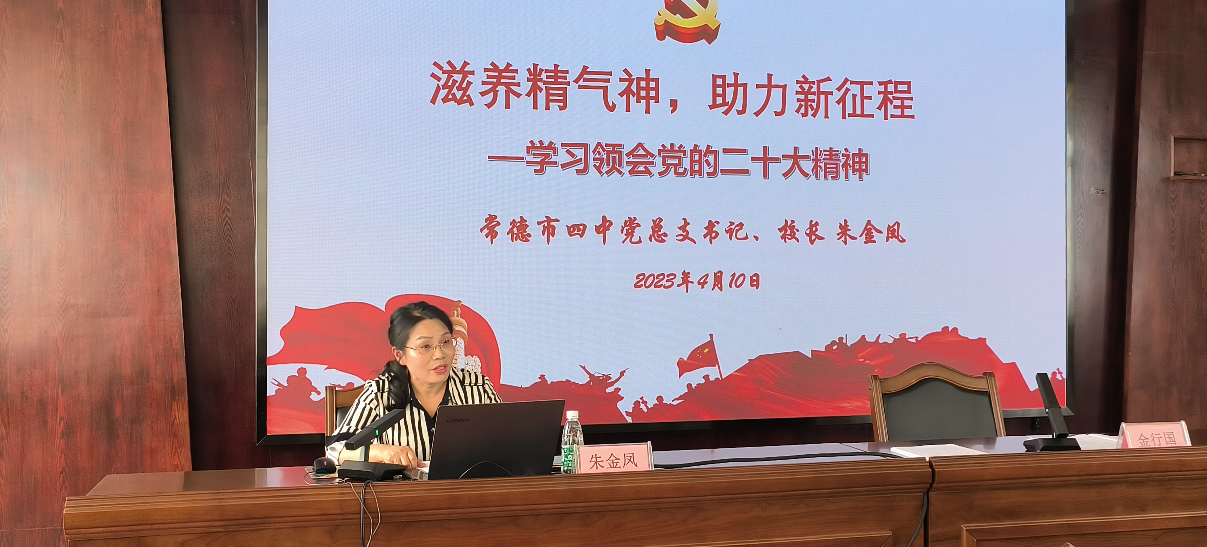 “人无精神不立。我们要坚定理想信念、筑牢信仰之基,自觉做‘两个确立’的坚决拥护者和‘两个维护’的坚定践行者。”4月10日,培训班第一讲由党的二十大代表,市第四中学党总支书记、校长朱金凤开讲。